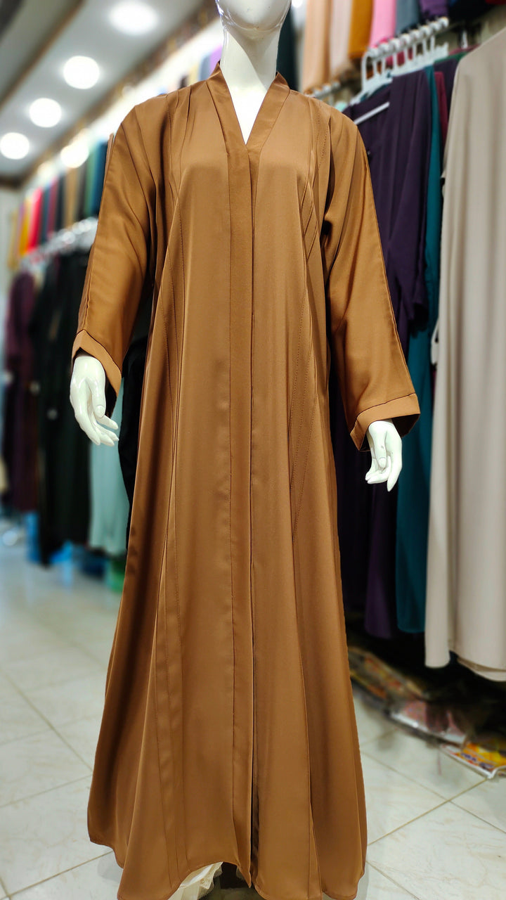 Asian Nida Straight Pintex Abaya-Golden Brown