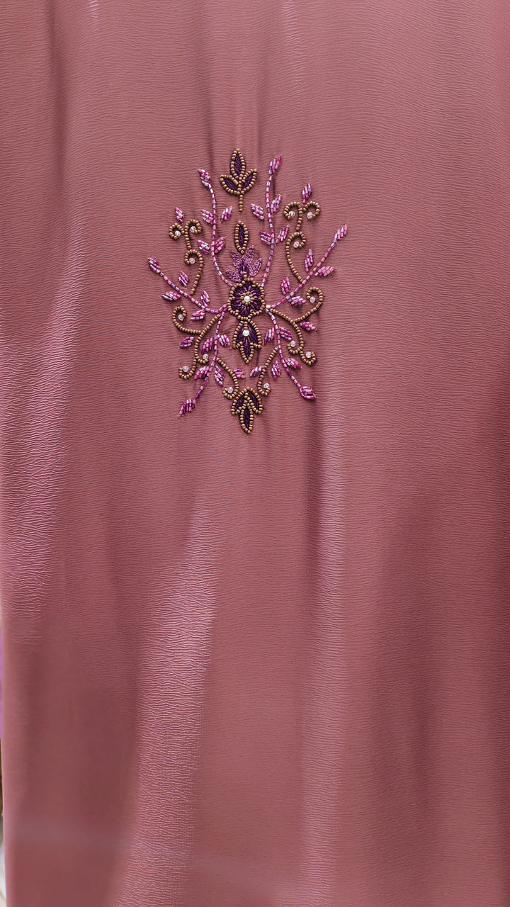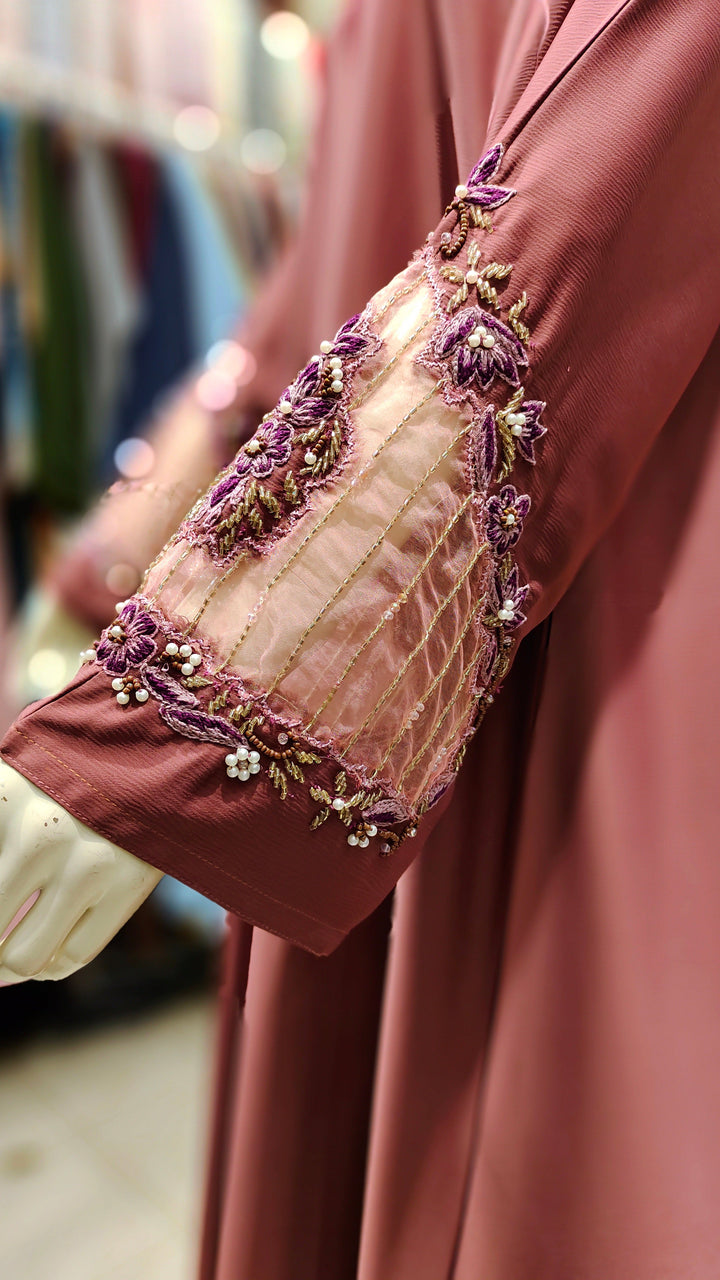 AW Romantic Handwork Abaya – Front Close-Dark Tea Pink