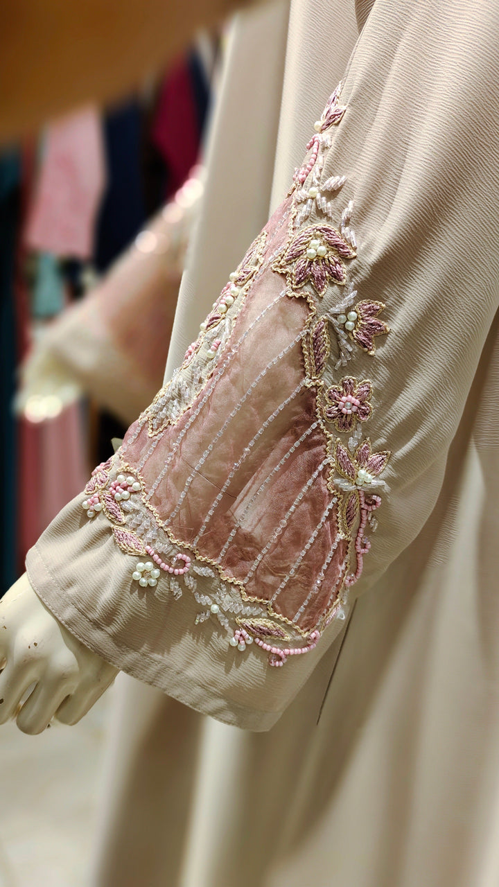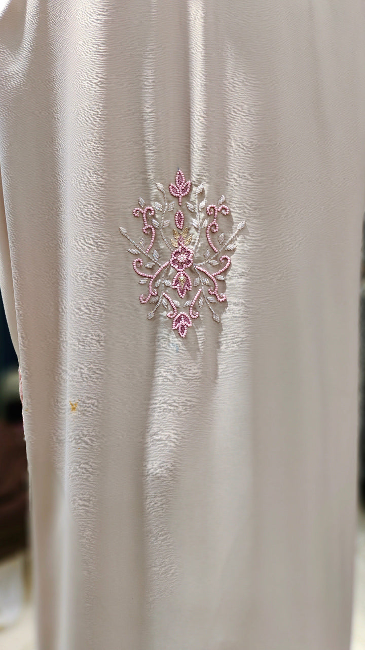 AW Romantic Handwork Abaya – Front Close-Pink White